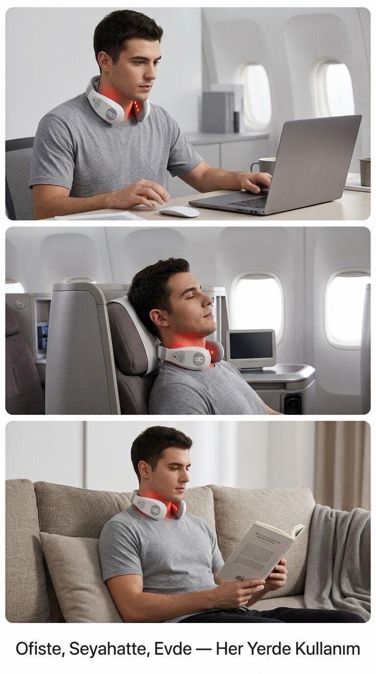 Ergonomik U-tipi tasarımı sayesinde boyun bölgesine kolayca uyum sağlar; evde, ofiste veya seyahat sırasında rahatlıkla kullanılabilir.