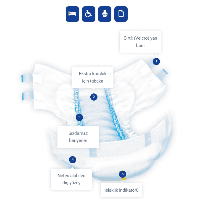 Yüksek emici iç tabakası sıvıyı hızlıca içine hapsederek kuru ve konforlu bir kullanım sunar. Sızdırmaz yan bariyerler taşma riskini azaltırken, nefes alabilen dış yüzeyi cilt sağlığını destekler.